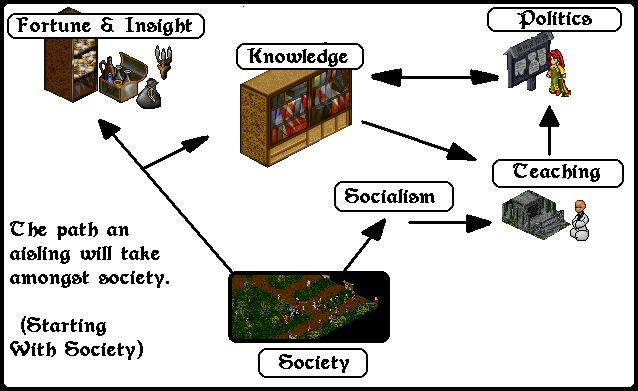 Depths of Societyby Rasputen in Dark AgesIntroduction When a mundane ascends to his aislinghood his immediate thirst for knowledge is derived from the fortunes of his own greed. At one point in your life you must stop and think of what your purpose in Temuair really is. Some may wish to achieve a heightened sense of socialism, some will seek political domination, some will wish to be seekers of knowledge, and some shall continue on their immediate goal of fortune. "The Path of Learning is Endless." No matter what purpose you uphold in Temuair there will always be higher level. When you go out hunting to seek insight you only gain the ability to hunt better and gain more insight. When you start your first political campaign you learn how to gain clout, be it lawfully or not, how to achieve respect from those in higher offices, and so forth. When you make friends you learn how to become a better friend. In the process of completely work for mundane recognition one must study to perfect his work. No matter what path of learning you take you will always have a greater goal to achieve. Judgment Every aisling has his own path to take in the cycle of learning, and henceforth should not be judged by a single aspect of his existence. As mentioned earlier, new aislings' immediate ideals are always of fortune, and thus judge you upon their ideals. When an aisling gains political status he may look down upon thee, for thou has not gained an equivalent status. However, of the many ideals, aislings of socialism tend to judge more accurately on your personality, sparing the conflict of hierarchy in society. Societal Layers Once ideals of fortune begin to fade and involvement sets in an aisling begins to learn much about Temuair he could never even dream of. An aislings perception on society is only what he has known it to be, which can also lead to false judgment. An aisling can read all he wants, and learn not the reality of society. When an aisling becomes involved in a guild, political office, faithful religion, events, teaching, and mundane recognition they gain a glimpse at something new. When they participate in further acts such as religious confrontations, court cases, crime, studying in-depth, etc. they then learn to a further their knowledge on society. The farthest layer reached is one of time spent, watching as society changes in its own depths. Purpose The idea of my teaching was meant to allow the reader to open his mind to other opportunities and allow them to see the world in another aislings eyes, helping them see the truth of different paths of hierarchy and depth. These separations of advancement show a great importance in the conflict and socialism between aislings of Temuair. Attatched Chart: ![]() (Note: Usage of the term "his" representing any aisling for convenience of literature) |